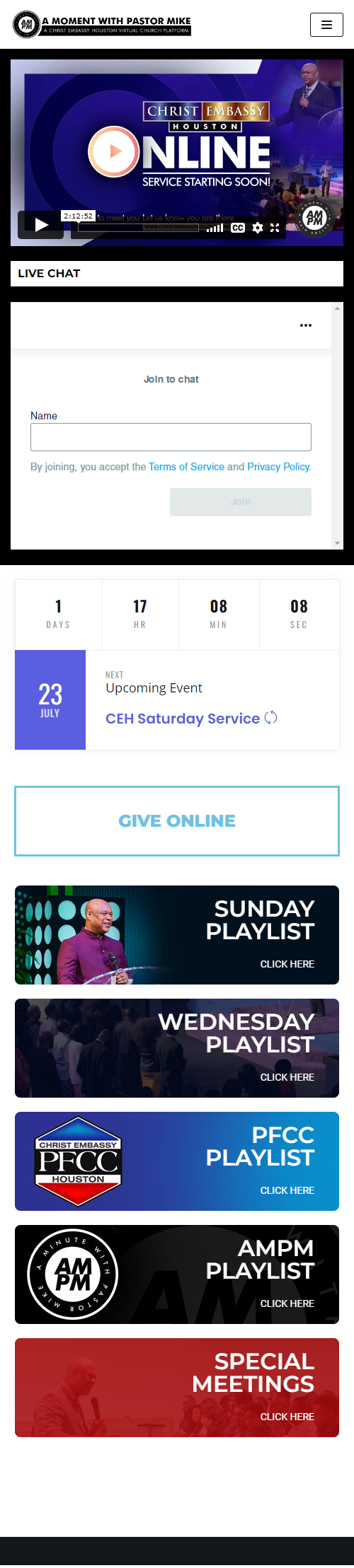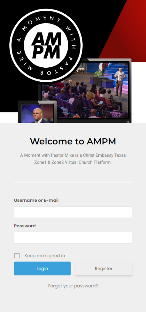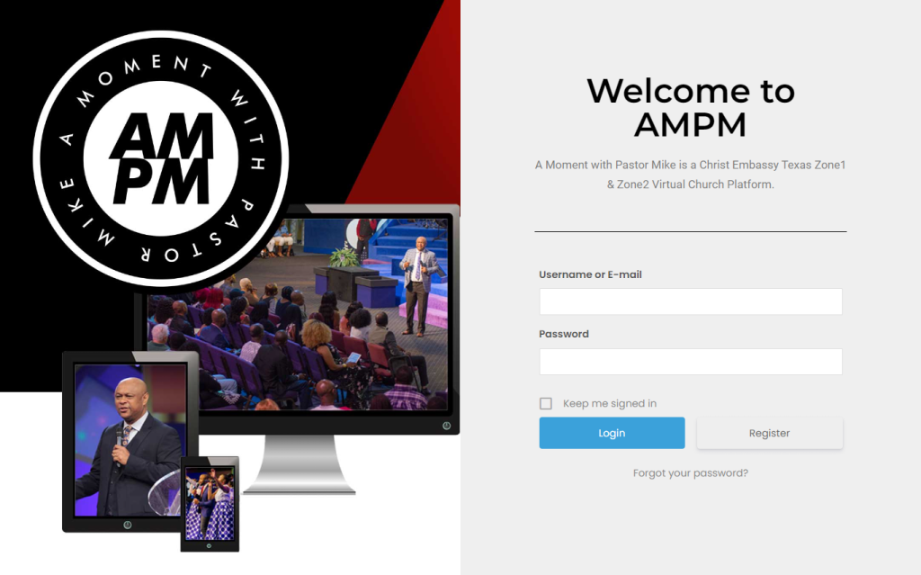 AMPM is the official virtual church platform for Christ Embassy Houston, a non-denominational church with 1000 on site members and an average of 5000 online members.